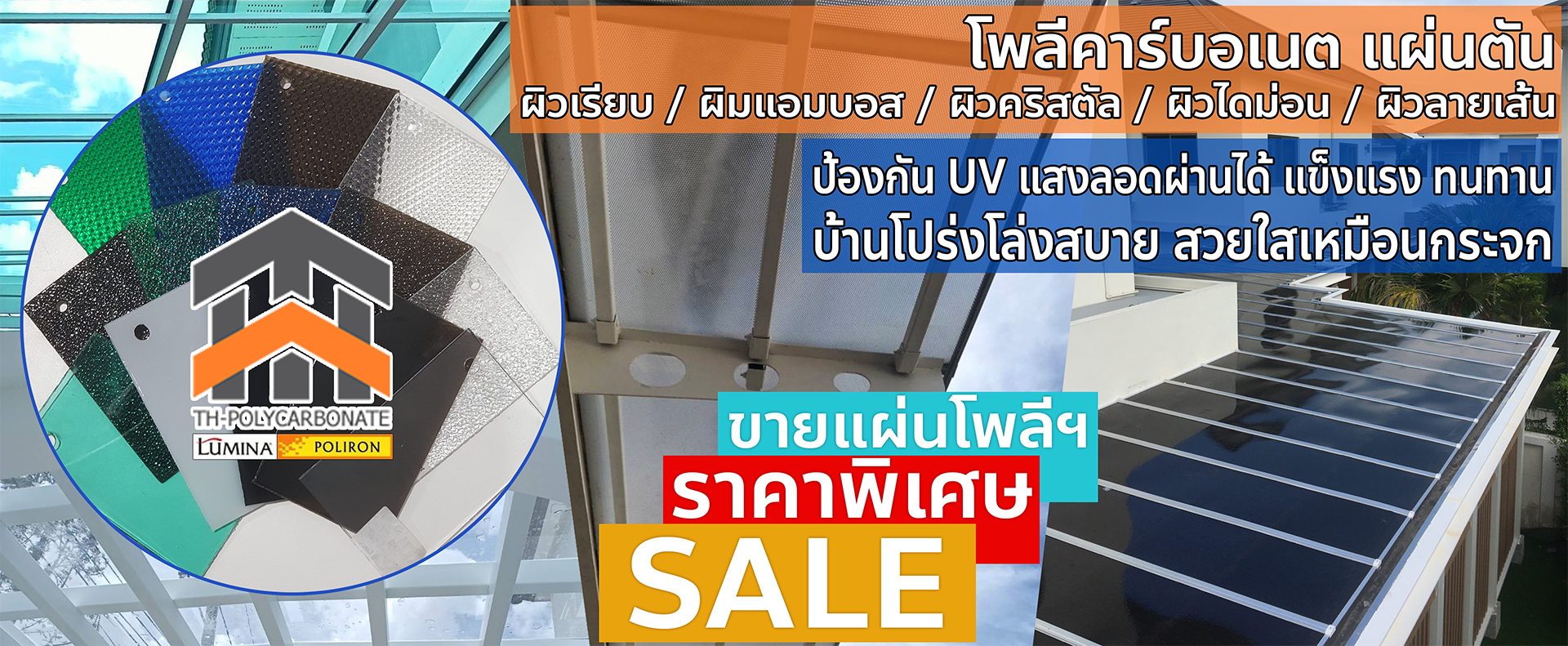 ป้องกันรังสี UV: โพลีคาร์บอเนต (Polycarbonate) มีการเคลือบสารป้องกับรังสี UV