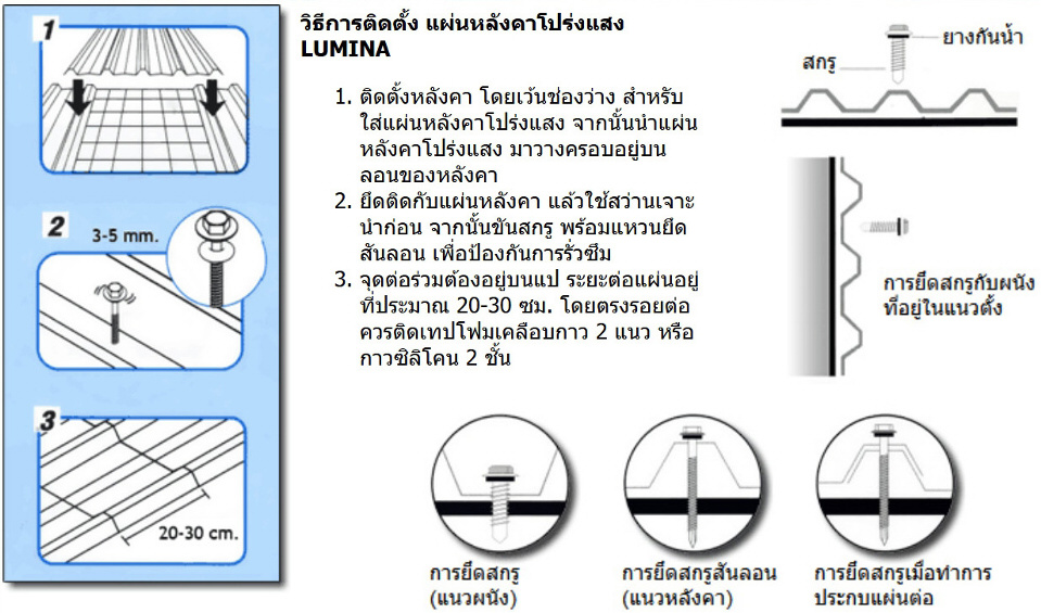วิธีติดตั้ง แผ่นหลังคาโปร่งแสง