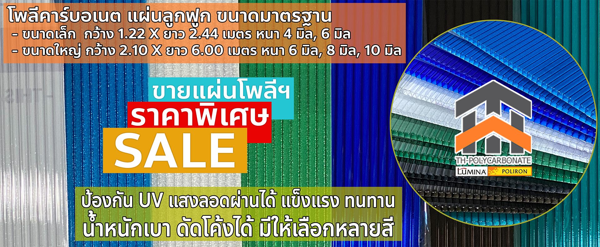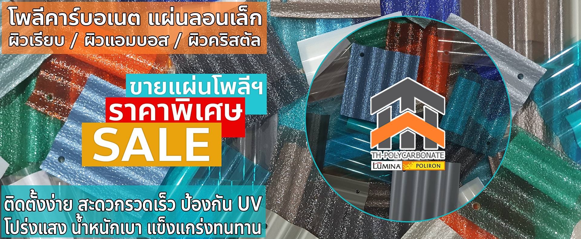ป้องกันรังสี UV: โพลีคาร์บอเนต (Polycarbonate) มีการเคลือบสารป้องกับรังสี UV